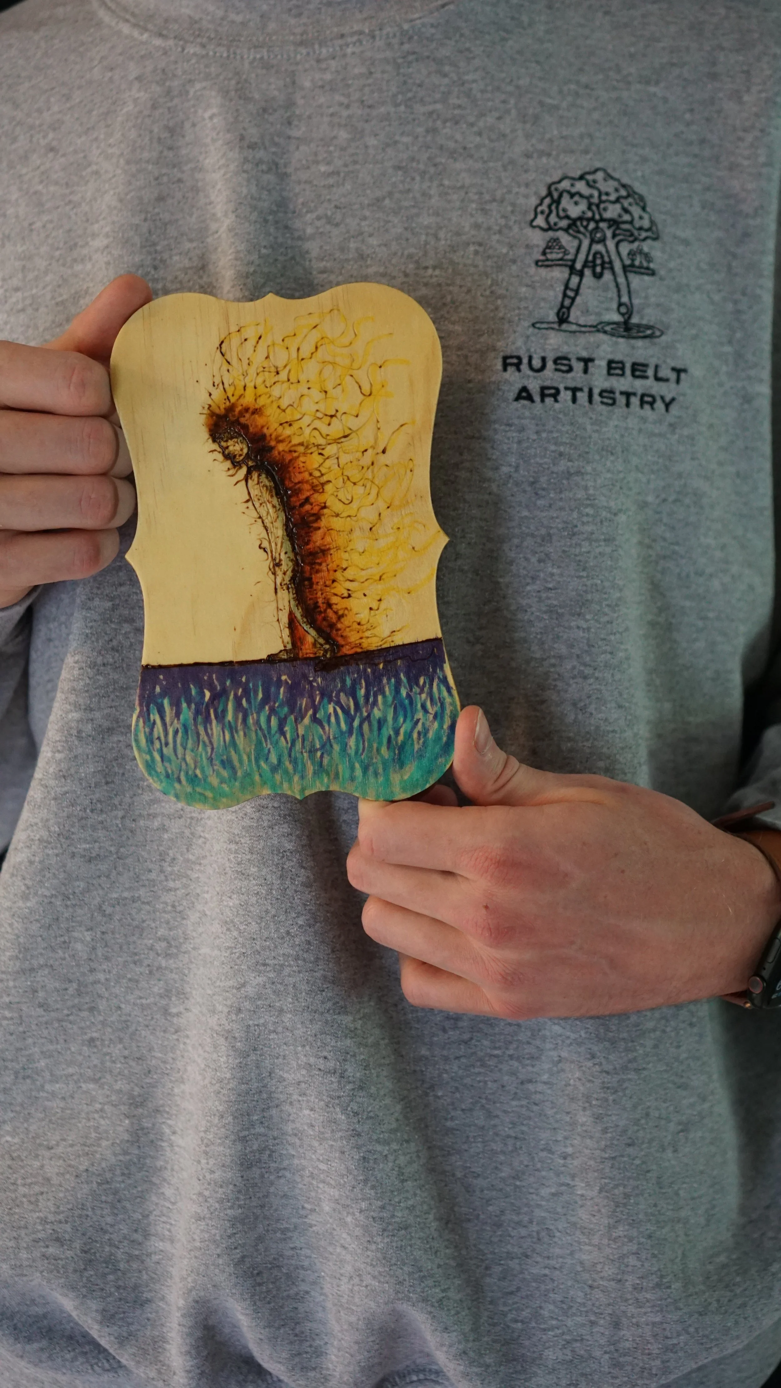 If you would like color added to your piece be sure to provide that information in your order form. Watercolor Pens/Markers are used to add color to the wood after being burned and before the piece is sealed - see below for examples of that technique.